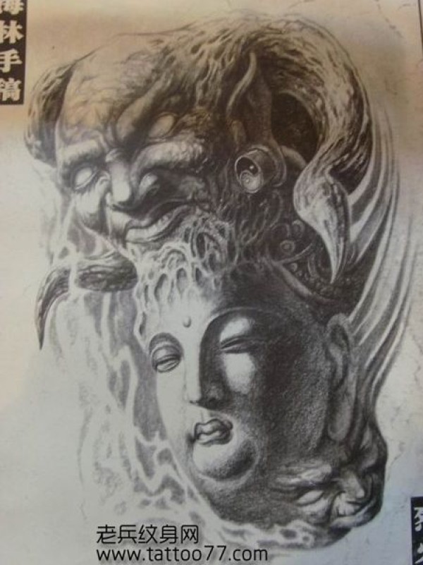 能面万媚纹身手稿_52张日式能剧面具纹身手稿图案素材欣赏