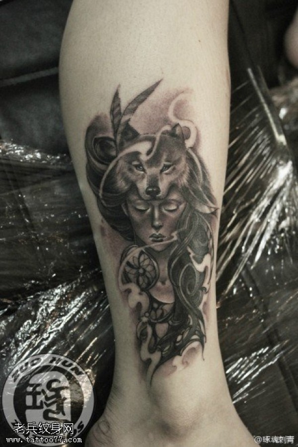 花腿纹身--一组大黑腿纹身图案作品欣赏