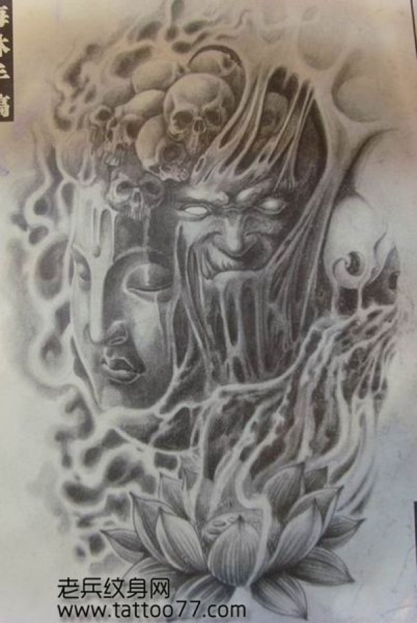 能面万媚纹身手稿_52张日式能剧面具纹身手稿图案素材欣赏