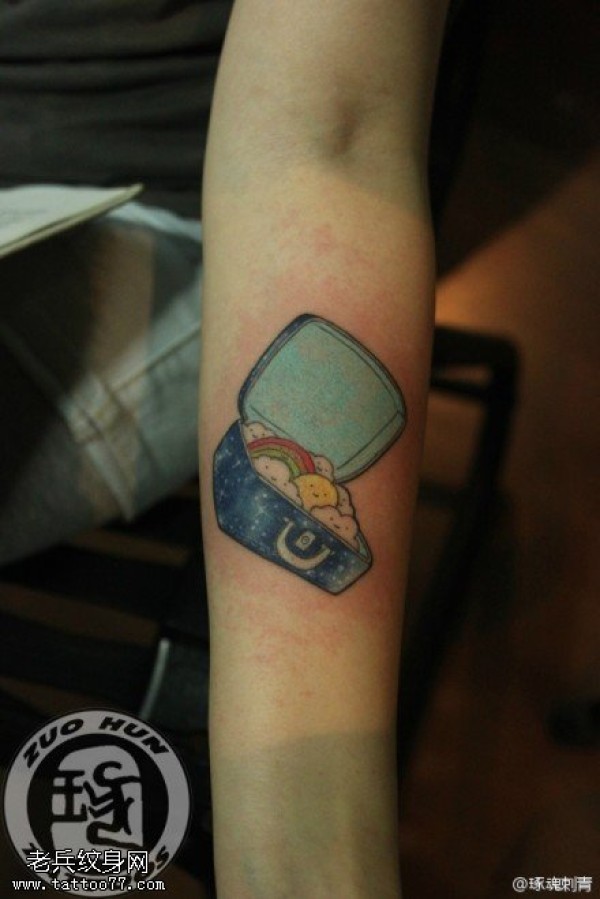 手臂彩色创意行李箱文身作品