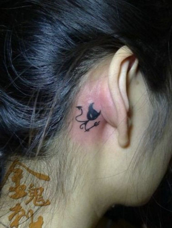 耳部可爱的图腾恶魔猫咪纹身图案