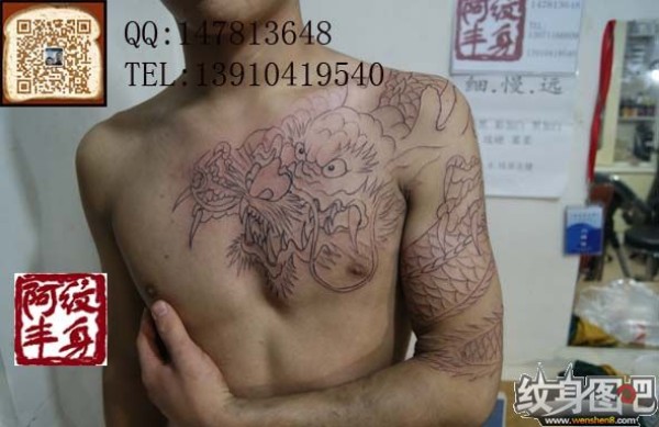 日式手彫刺青作品—半甲龙很感谢客户认可手彫刺青,手彫是日本纹身的手工雕刻技术,时间可以追溯到日本17世纪的江户时代。19世纪,手彫技术被日本黑帮挪用,被用作入会仪式,象征着从此就是江湖中人。在日式传统