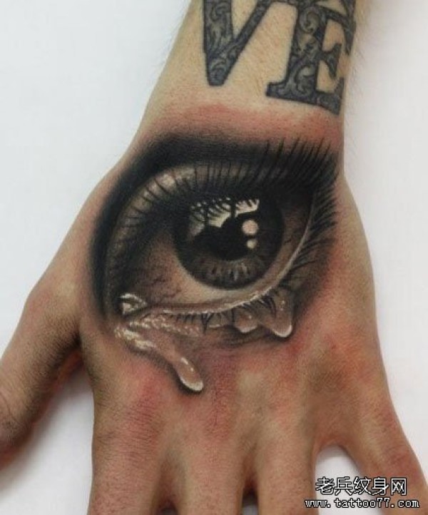 手背一款经典潮流的黑灰眼睛纹身图案