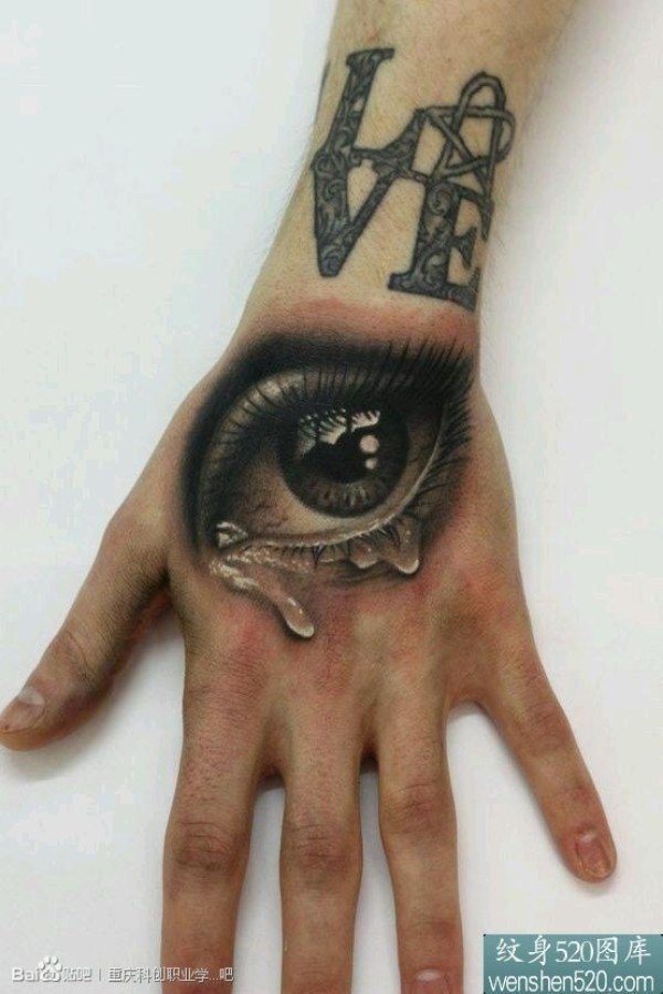 手背上逼真的3d眼睛纹身图案