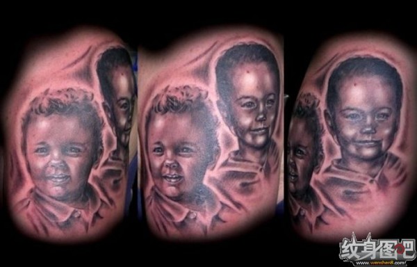 两个孩子的肖像纹身