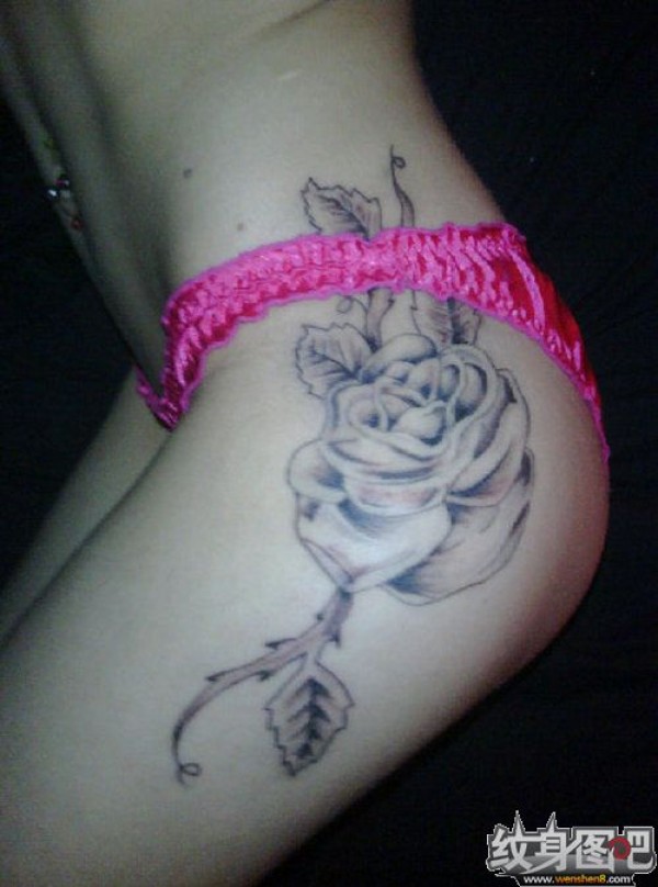 臀部超大的玫瑰花纹身