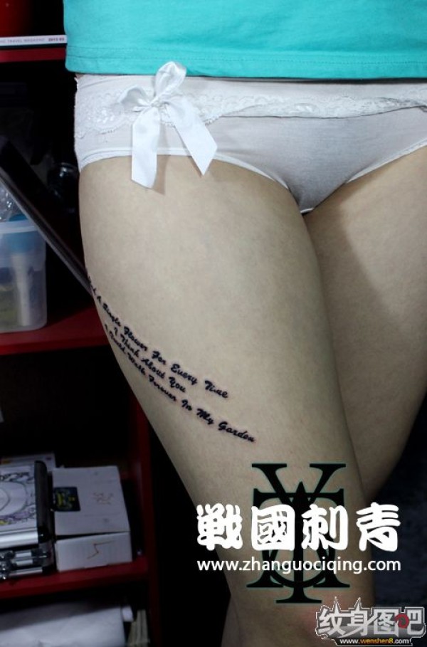 大腿字母纹身