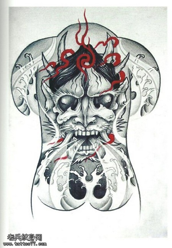 能面万媚纹身手稿_52张日式能剧面具纹身手稿图案素材欣赏