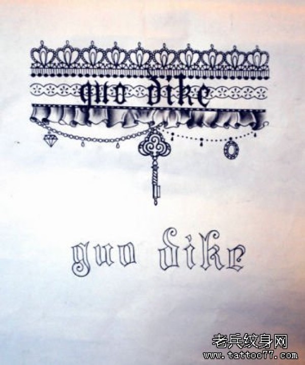 一款时尚性感的蕾丝纹身手稿纹身图案