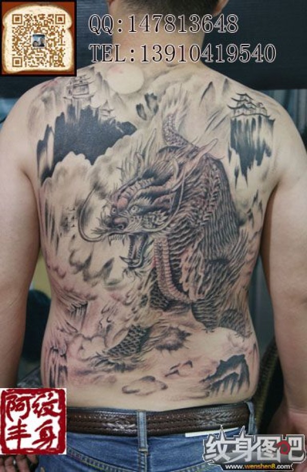 黑白纹身 满背麒麟纹身图案 纹身图 北京纹身 阿丰堂纹身作品