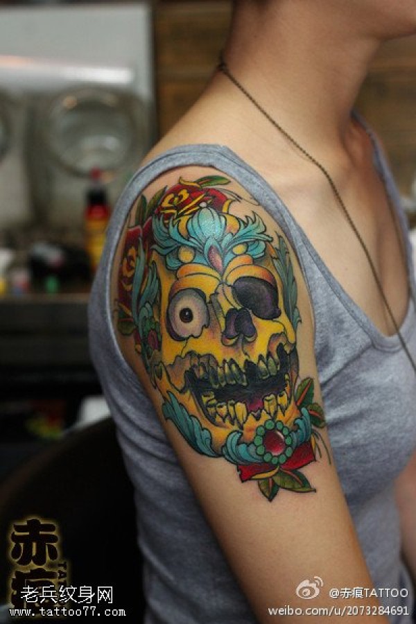 个性手臂悲伤的骷髅纹身图案图案图片_骷髅纹身图案大全_纹身图吧