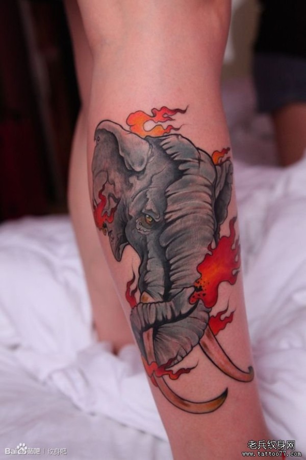 小腿上一款大象纹身图案_腿部纹身图案大全_纹身图吧