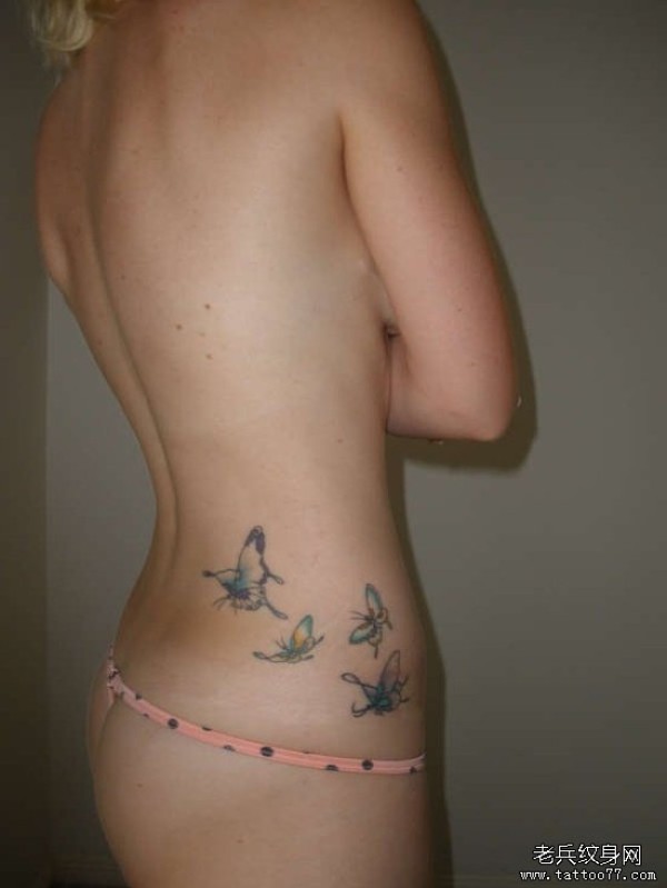 分享一款腰部时尚性感的蝶恋花纹身图案_腰部纹身图案大全_纹身图吧