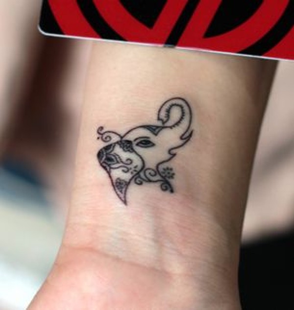 女孩子手臂可爱的图腾大象纹身图案