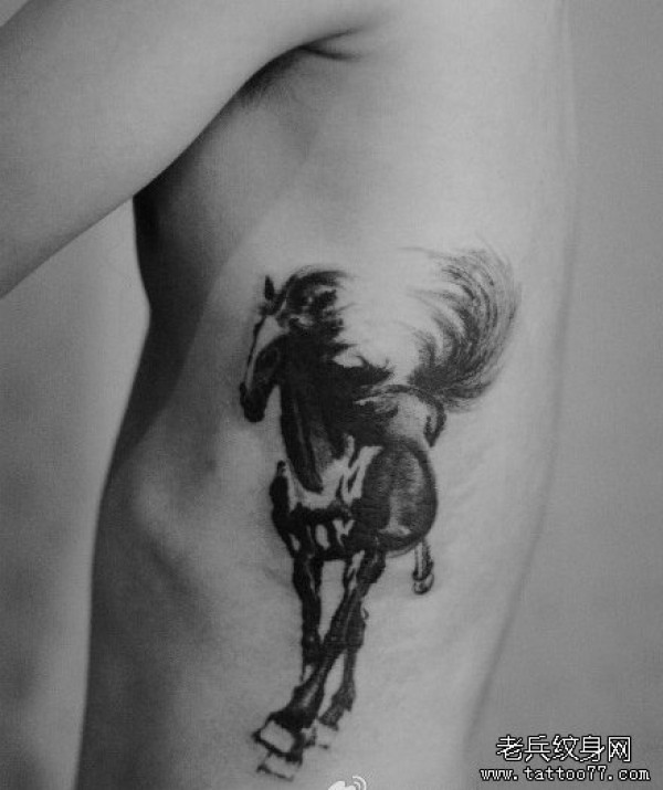 侧腰一款水墨画风格马纹身图案