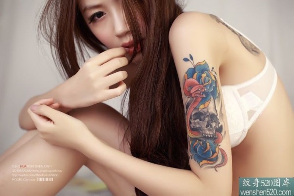 手臂莲花蛇纹身图案_臂部纹身图案大全_纹身图吧