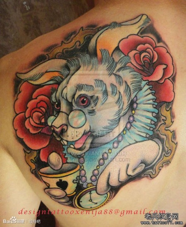 肩背潮流经典的一款兔子纹身图案