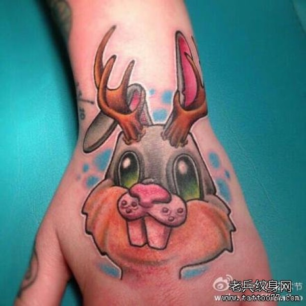 手背上一款卡通兔子纹身作品
