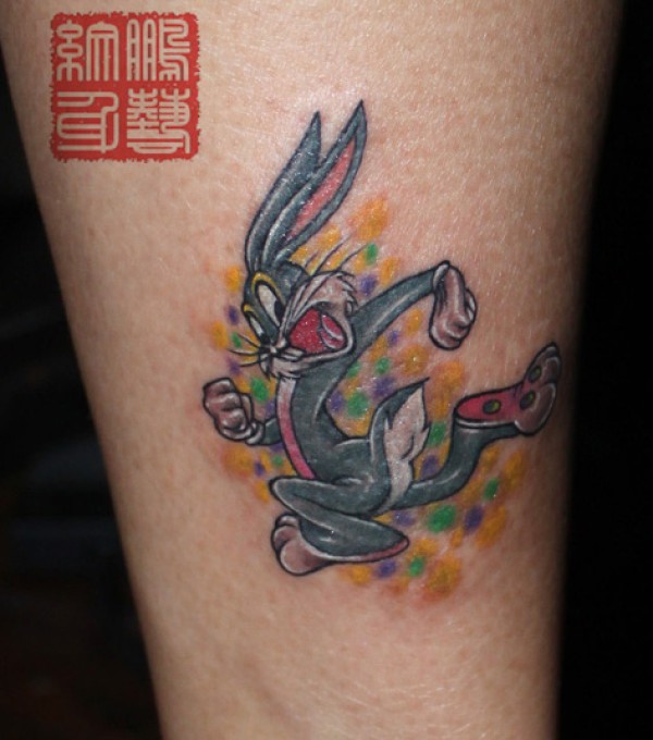 腿部可爱卡通兔子纹身图案