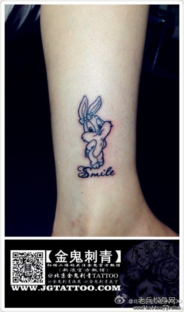 女生腿部可爱的卡通兔子纹身图案