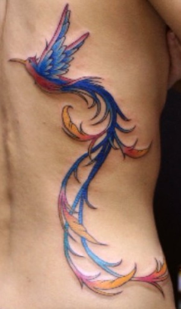腰部彩色小鸟纹身图案