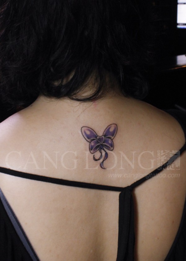后背蝴蝶结纹身