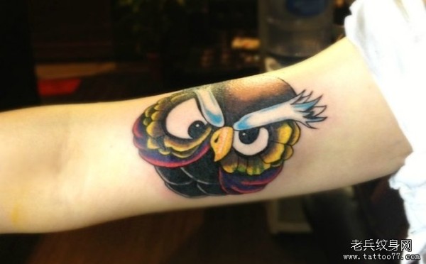最好的纹身馆分享一款手臂彩色猫头鹰纹身图案