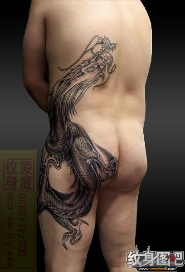 龙纹身手稿_一组老传统黑灰龙手稿纹身图案