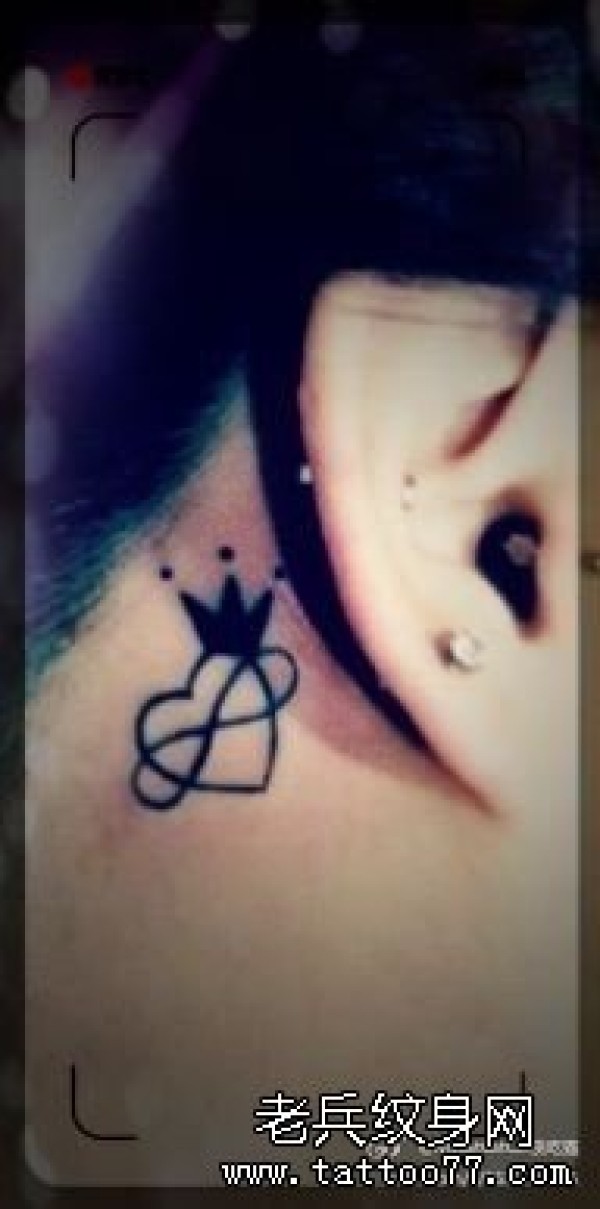 女生耳部小巧的图腾爱心皇冠纹身图案