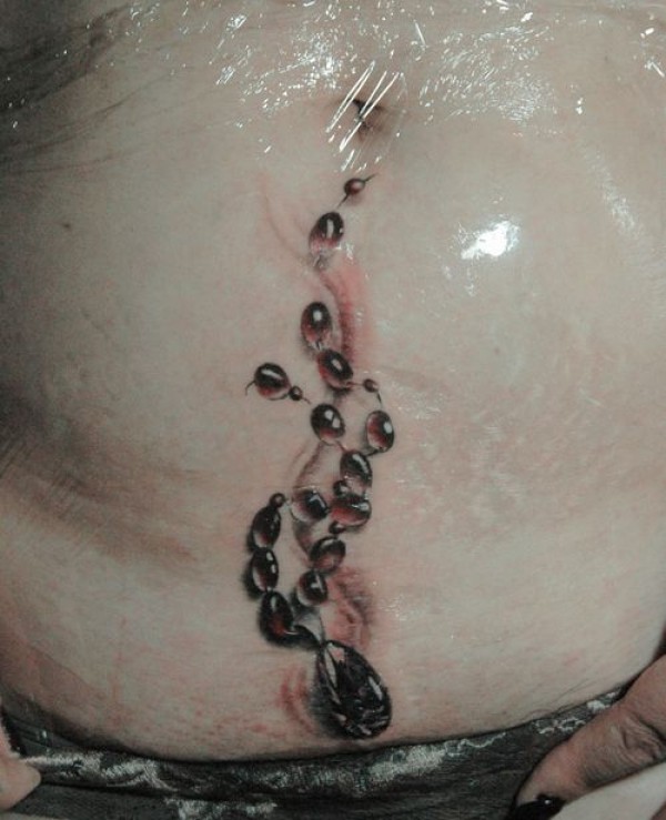 女孩子腹部一款钻石吊链纹身图案