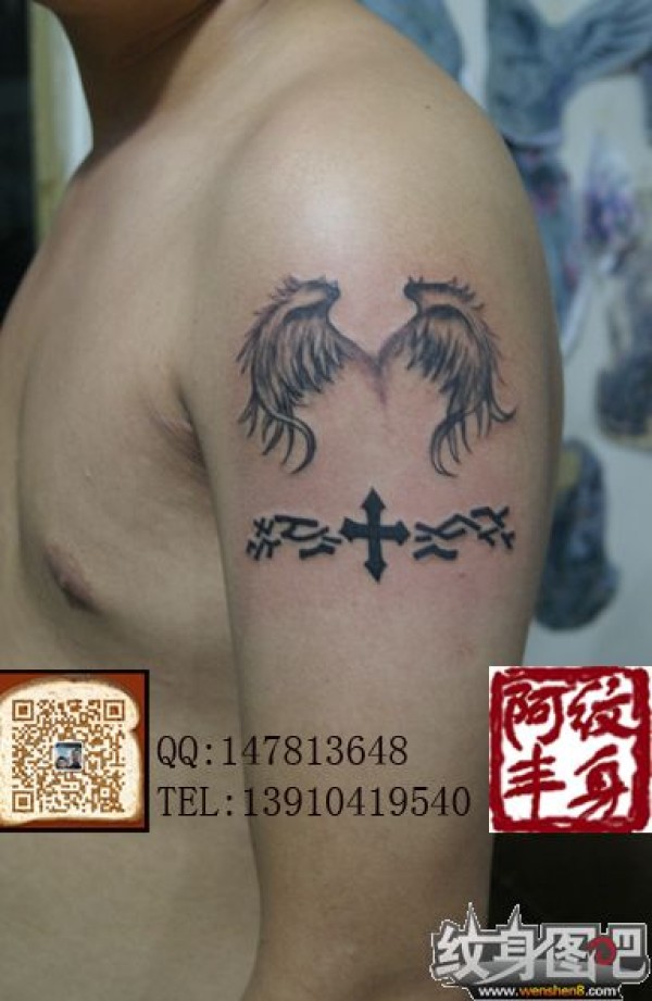 肩部天使的翅膀纹身图片 纹身图案#北京纹身#阿丰堂纹身作品#最时尚的纹身图案