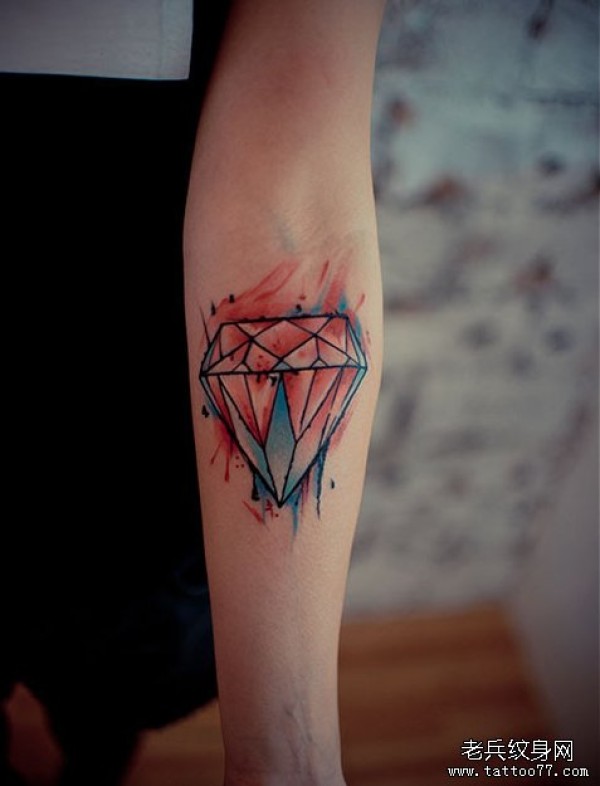纹身图吧分享一款手臂彩色钻石纹身图案