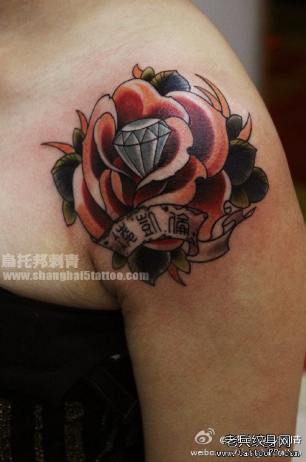 女生肩花纹身_15张女性双肩对称的肩花纹身图案作品图片