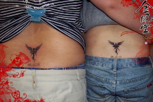 情侣后腰翅膀十字架纹身图案