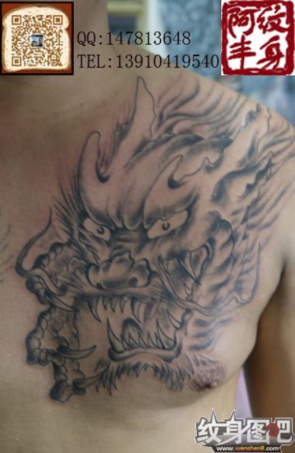 胸前龙头纹身纹身图片,北京大红门纹身 阿丰纹身