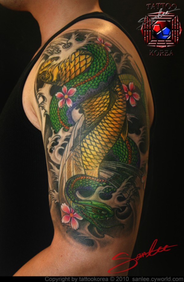手臂莲花蛇纹身图案_臂部纹身图案大全_纹身图吧