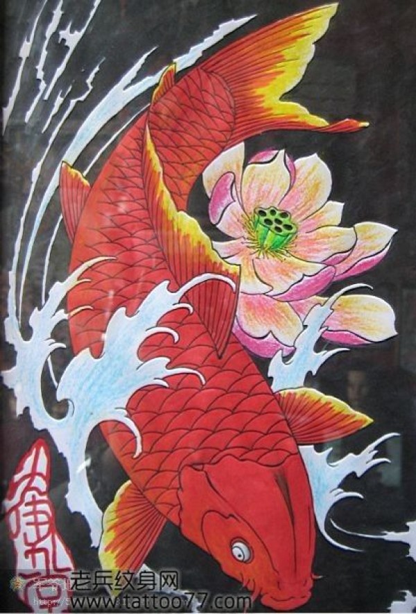 彩色鲤鱼纹身手稿纹身图吧为你提供