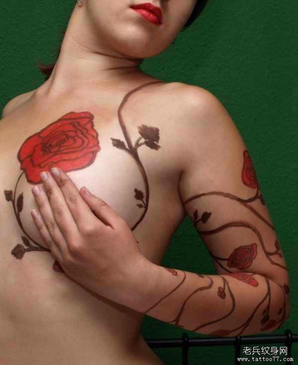欧美玫瑰纹身 男生手臂上花朵纹身图片