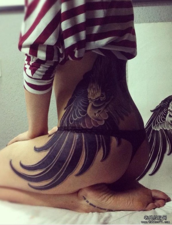 纹身图吧分享一款女生臀部老鹰纹身图案