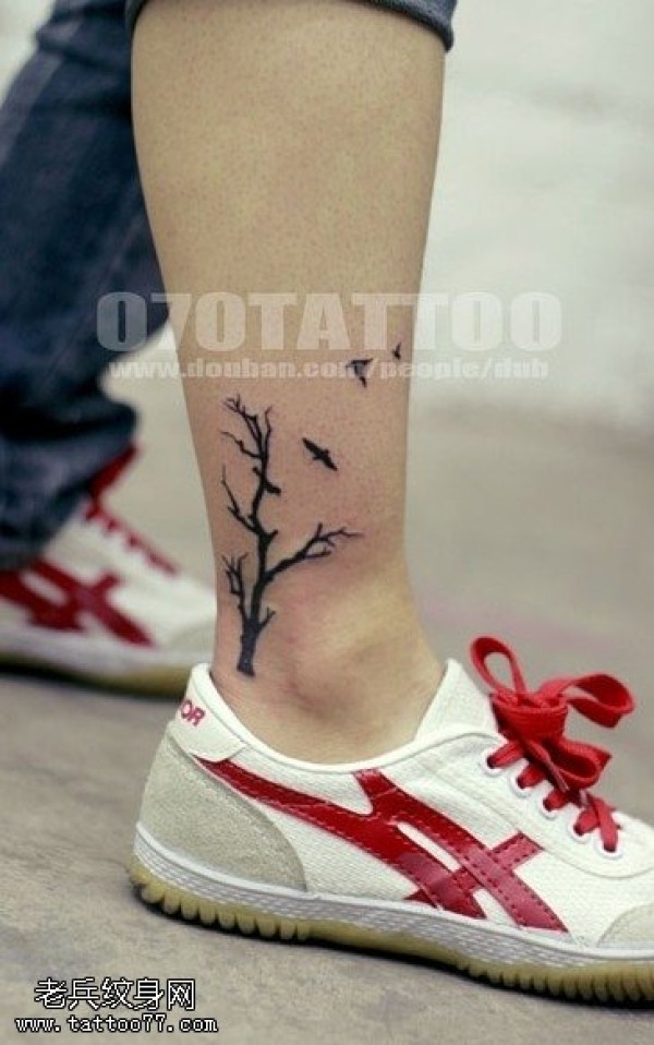 小清新脚部树图腾纹身图案