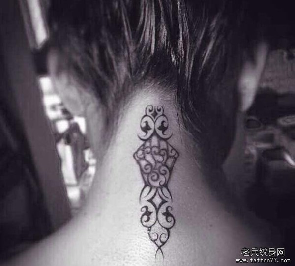 纹身图吧分享一款女生颈部图腾纹身图案