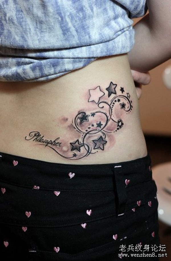 美女后腰图腾星星纹身图案