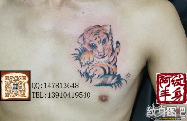 胸前小老虎纹身纹身图片,北京木樨园纹身 阿丰纹身