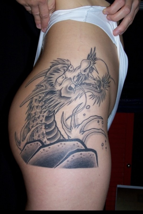 龙纹身手稿_一组老传统黑灰龙手稿纹身图案