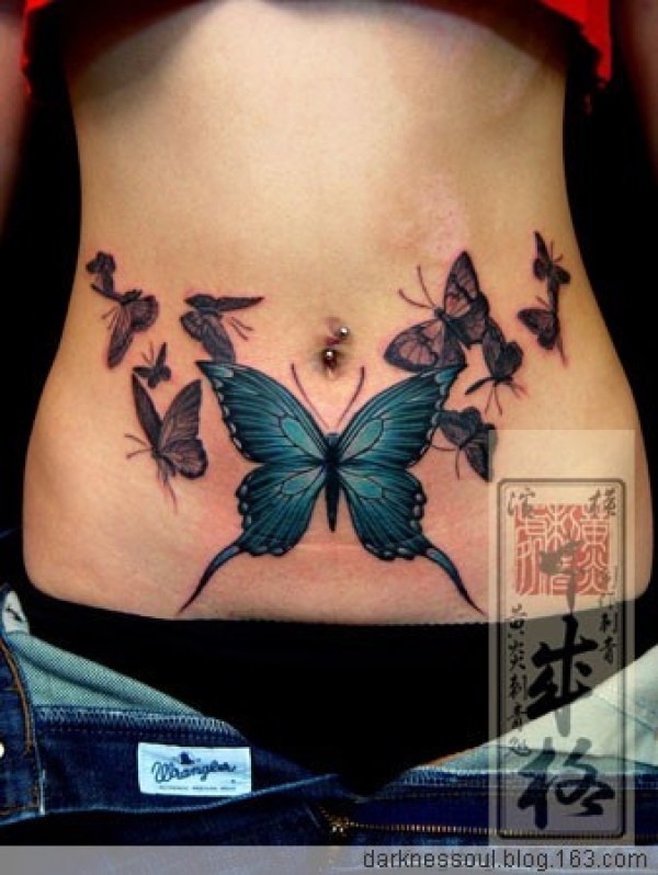 美女腹部蝴蝶纹身―日本黄炎纹身作品