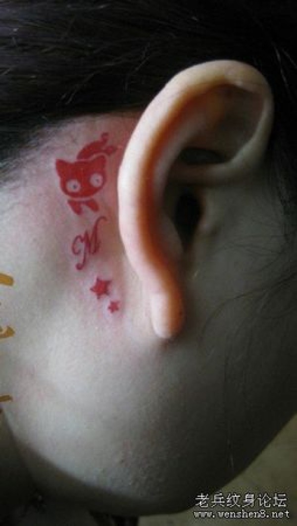 多款女生耳后黑色线条素描文艺小清新小图案纹身图案