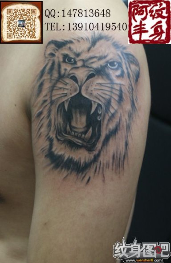 肩部狮子头纹身图案 狮子头纹身纹身图片,北京木樨园纹身 阿丰纹身