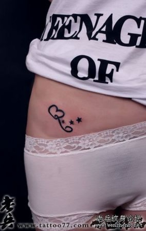 美女腹部图腾爱心五角星纹身图案