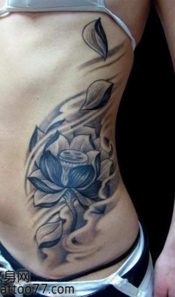女性腰部莲花花纹刺青_腰部纹身图案大全_纹身图吧