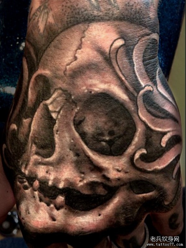 纹身图吧手背上一款骷髅纹身图案